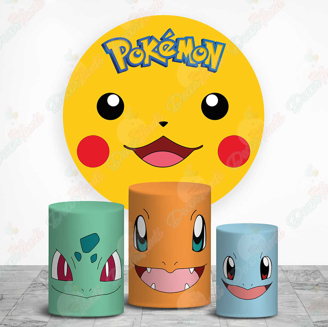 Pokemon Caras tela sublimada para cilindros de fiestas – círculo fiesta de fondo cubierta de tabla Banner Evento Cumpleaños